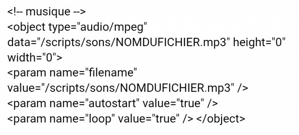Faite 1 dossier nommé (scripts) ,puis dans celui-là un autre nommé (sons). Y ajouter votre fichier seulement en .MP3